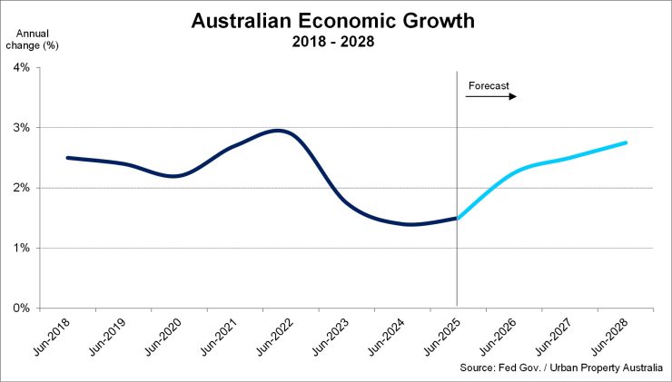 Despite heightened global uncertainty, growth has picked up and a soft landing is looking increasingly likely for Australia. Beyond this year, the economy is expected to gain further momentum with growth of 2.25% projected in the 12 months to June 2026 and 2.5% the following financial year.
